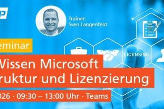 Unser hochkarätiger Microsoft-Experte Sven Langenfeld vermittelt Ihnen kompakt und praxisgerecht einen Technologie- und Lizenzierungs-Überblick zu folgenden Themen: Windows Server 2025 Azure Local Azure Arc Strategie und Services VDI, RDS und AVD Windows 11 Haftungsausschluss:Falls ein Seminar aufgrund der Krankheit des*der Referierenden, höherer Gewalt oder anderer unvorhersehbarer Ereignisse ausfällt, übernehmen wir keine Haftung. Dies gilt auch für […]