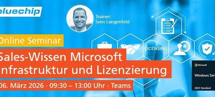Wir freuen uns, Sie am Mittwoch, den 25. Februar 2026, um 10:00 Uhr per Microsoft Teams digital begrüßen zu dürfen. In diesem kostenfreien Teams-Meeting erhalten Sie einen Überblick über unser bluechip Cloud-Center. In diesem kostenfreien Teams-Meeting zeigen wir Ihnen das Handling von unseren bluechip Cloud-Centers hinsichtlich der Eigenmarke-Dienste, sowie der Buchung von Microsoft-Produkten: Themenfelder: Workplace-as-a-Service […]
