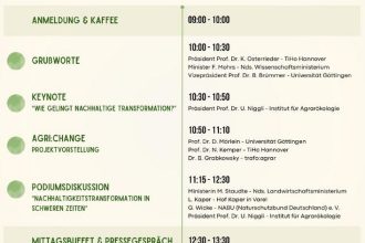 Eingebettet in die Tagung „Zukunft durch Wandel?!“ Mit einer öffentlichen Auftaktveranstaltung startet das Verbundvorhaben agri:change, das konkrete Transformationspfade für eine zukunftsfähige Agrar- und Ernährungswirtschaft entwickeln will. Die Auftaktveranstaltung ist eingebettet in die Tagung „Zukunft durch Wandel?! – Brauchen wir Nachhaltigkeitstransformation in schweren Zeiten?“ am 23. Februar 2026 an der Stiftung Tierärztliche Hochschule Hannover. Tagungsinhalte Im Fokus […]