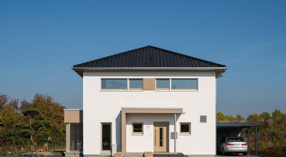 Sie sind am Bauen mit FingerHaus interessiert? Dann besichtigen Sie das Kundenhaus MEDLEY 3.0 401 mit Walmdach, gebaut auf einer THERMO+ Fundamentplatte in der Ausbaustufe »technikfertig«. Das Effizienzhaus 40 wird durch eine Luft/Wasser-Wärmepumpe beheizt.