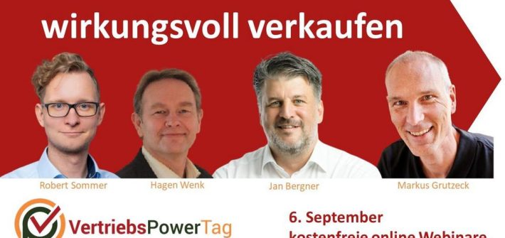 kostenlosen Online-Event „VertriebsPowerTag“ am 6. September Sie fragen sich, wie Sie mehr Termine im Vertrieb bekommen? Markus Grutzeck bietet Ihnen um 9 Uhr praxisnahe Schritte zum Erfolg. Nutzen Sie Ihre Serviceanfragen noch effizienter: Um 10 Uhr zeigt Ihnen Jan Bergner, wie Sie diese in erfolgreiche Verkäufe umwandeln können. Kunden besser verstehen und verstanden werden – […]