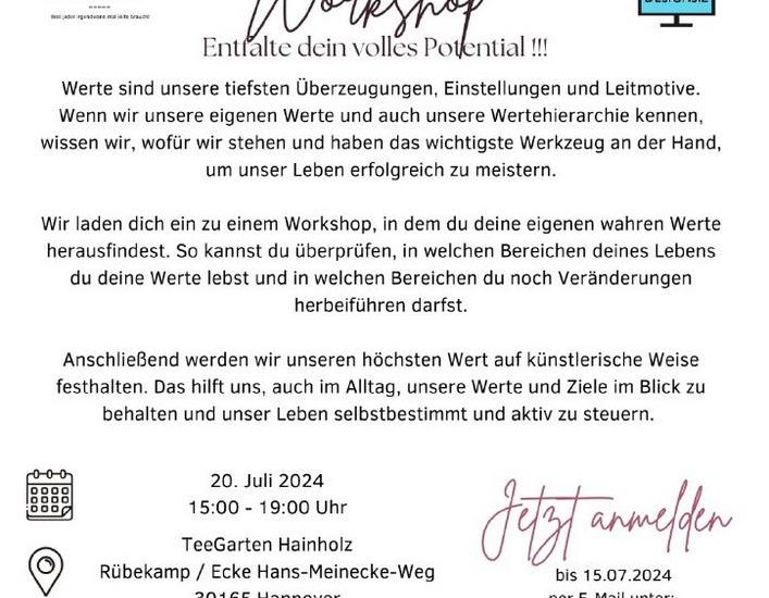 Wir laden dich herzlich ein zu einem Workshop, in dem du deine eigenen, wahren Werte herausfindest. So kannst du überprüfen, in welchen Bereichen deines Lebens du deine Werte lebst und in welchen Bereichen du noch Veränderungen durchführen darfst.