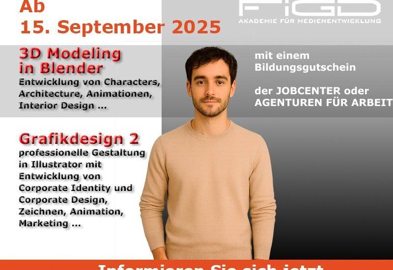 Die FiGD Akademie Berlin bietet ab dem 25. August 2025 eine praxisorientierte Online-Weiterbildung in 3D Modeling mit Blender an. Der Kurs läuft bis zum 21. November 2025 in Vollzeit (Montag bis Freitag, 08:30 – 15:30 Uhr) und richtet sich an alle, die sich gezielt im Bereich 3D-Design, Animation und Game Design weiterqualifizieren möchten.