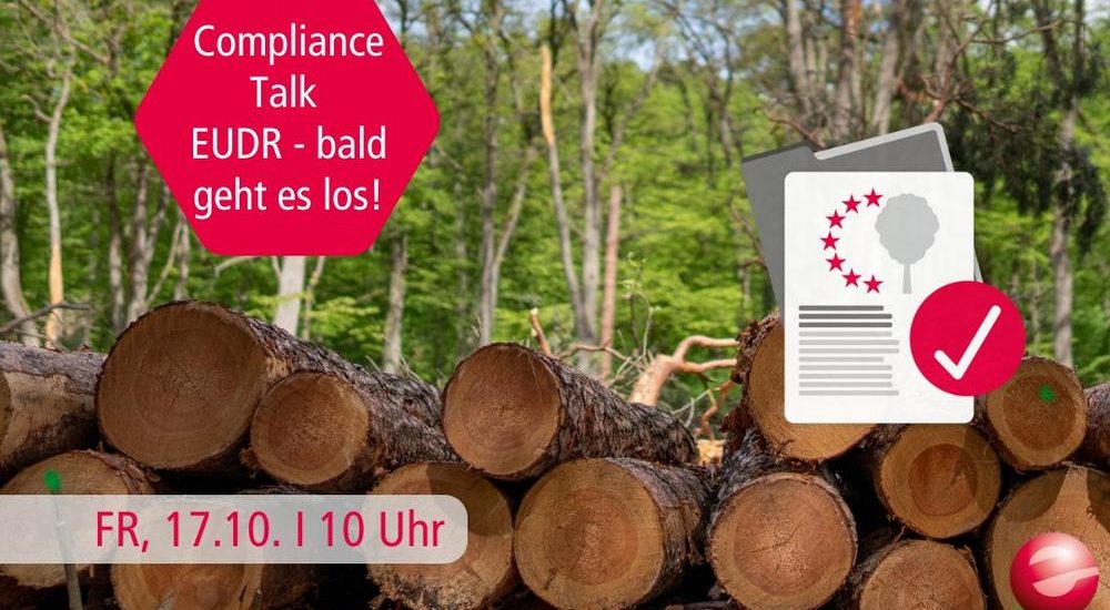 Die EU-Verordnung über entwaldungsfreie Lieferketten (EUDR) tritt bald in Kraft – höchste Zeit, sich vorzubereiten. In unserem kostenlosen Compliance Talk am 17. Oktober um 10 Uhr geben wir einen kompakten Überblick zu den wichtigsten Punkten.