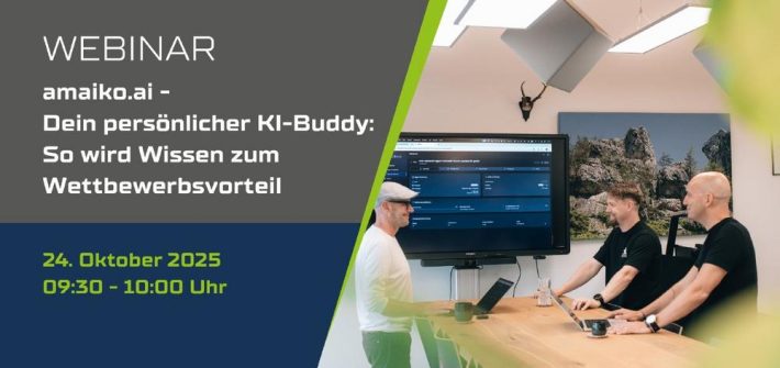amaiko.ai – Dein persönlicher KI-Buddy: So wird Wissen zum Wettbewerbsvorteil In diesem 30-minütigen Webinar zeigen wir, wie AMAiKO.AI modernes Wissensmanagement neu definiert.Erfahre, wie dein Team mit einem persönlichen KI-Buddy in Microsoft Teams arbeitet – ohne neue Tools, ohne Schulungsaufwand, aber mit maximalem Produktivitätsgewinn. AMAiKO.AI sichert das gesamte Unternehmenswissen – ob in Köpfen, Chats oder Dokumenten […]