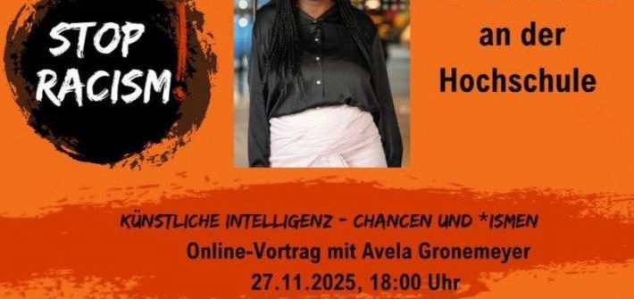Am Donnerstag, 27. November, um 18 Uhr, lädt die AG Rassismus der Hochschule Osnabrück zum Online-Vortrag „Künstliche Intelligenz – Chancen und Ismen“ mit Avela Gronemeyer ein. Avela Gronemeyer (M.Sc. Wirtschaftsinformatik) ist Unternehmens- und Technologieberaterin sowie Solution Lead Smarter Greener Futures. Sie spricht über die Chancen und Herausforderungen künstlicher Intelligenz – von verantwortungsvoller Innovation über ethische […]