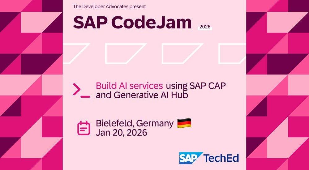 Jetzt kostenlos anmelden und deinen Platz sichern https://community.sap.com/t5/sap-codejam/build-ai-services-using-the-cap-and-generative-ai-hub-bielefeld-germany/ec-p/14270837#M1007