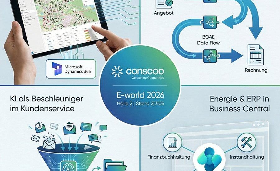 Über conscoo GmbH conscoo ist ein spezialisierter IT-Dienstleister für die Energiewirtschaft. Das Unternehmen begleitet Versorgungsunternehmen bei der digitalen Transformation auf Basis von Microsoft-Technologien. Zu den Kernkompetenzen gehören ERP-Lösungen, CRM-Integration sowie die strategische Beratung zu Prozessen, Menschen und Daten.