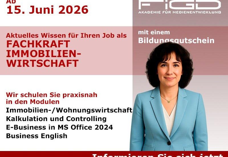 Wer sich beruflich neu orientieren und im Bereich Immobilien, Verwaltung und wirtschaftsbezogener Organisation eine fundierte Qualifikation erwerben möchte, findet mit der Weiterbildung zur Fachkraft Immobilienwirtschaft an der FiGD Akademie eine praxisnahe und arbeitsmarktorientierte Möglichkeit für den Einstieg in ein vielseitiges Berufsfeld. Die Weiterbildung wird in Präsenz durchgeführt und richtet sich an Menschen, die sich auf Tätigkeiten in der Immobilienwirtschaft, Wohnungswirtschaft, Vermarktung oder immobilienbezogenen Verwaltung professionell vorbereiten möchten. Besonders attraktiv ist dabei die Möglichkeit, die Weiterbildung über den Bildungsgutschein vollständig fördern zu lassen.
