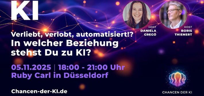 „Verliebt, verlobt, automatisiert!?“ – KI-Community feiert 5-jähriges Bestehen mit Event für KMU´s Düsseldorf, 05. November 2025 – Die CHANCEN DER KI Community lädt zum Jubiläums-Event ins Ruby Carl Workspace Düsseldorf ein. Unter dem Motto „Verliebt, verlobt, automatisiert!? – In welcher Beziehung stehst Du zu KI?“ treffen sich KMU-Vertreter:innen zum Austausch über Künstliche Intelligenz im Unternehmensalltag. […]