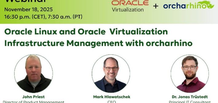 Oracle Linux and Virtualization Management with orcharhino Date: Tuesday, November 18, 2025, 16:30 p.m. (CET) Language: English Simplify Infrastructure and Virtualization Management Discover how orcharhino provides a unified, vendor-neutral platform for managing Oracle Linux and Oracle Virtualization environments. Learn how it integrates deployment, configuration, automation, and reporting to simplify complex IT operations. Seamless Integration with […]