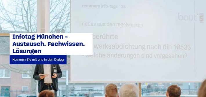 Erleben Sie einen praxisnahen Tag, der Techniken der erdberührten Bauwerksabdichtung im Neubau und im Altbau, den gezielten Einsatz Künstlicher Intelligenz in der Planung, sowie rechtssichere Nachträge in den Fokus nimmt. Anhand einer Remmers-Referenz wird Planungspraxis konkret greifbar. Inhalte im Überblick: Techniken der erdberührten Bauwerksabdichtung im Neubau Abdichtungstechniken für die Sanierung Künstliche Intelligenz für die Planung […]