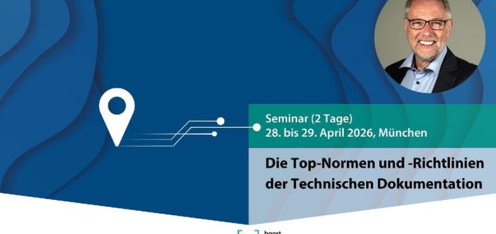 Die Top-Normen und ‑Richtlinien der Technischen Dokumentation28. bis 29. April 2026, MünchenReferent: Dieter Gust Das 2-tägige itl-Normenseminar gibt Ihnen den passenden Überblick über Normen, Richtlinien und gesetzliche Vorgabe aus dem Bereich der Technischen Dokumentation. Der itl-NormenGuide und eine umfassende Checkliste nach 82079 sind Bestandteil des Seminars. Der Grundansatz des Seminars beruht auf den Top 15 […]