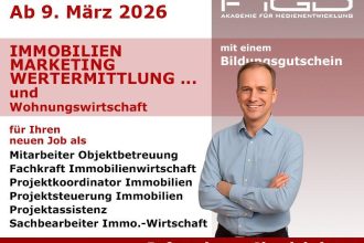 Die Immobilienbranche zählt zu den stabilen Wachstumsfeldern auf dem Arbeitsmarkt. Wer in diesem Bereich Fuß fassen will oder eine neue berufliche Perspektive sucht, findet mit der Weiterbildung „Immobilien, Marketing, Wertermittlung und Wohnungswirtschaft“ der FiGD Akademie einen praxisnahen Einstieg. Der Kurs startet am 09.03.2026 in Berlin und dauert rund drei Monate in Vollzeit. Ziel ist es, […]