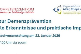 Digitale Fachveranstaltung am 22. Januar 2026 13:00 – 17:00 Uhr via zoom Demenzprävention betrifft uns alle. Doch was wirkt wirklich? Welche Lebensphasen sind entscheidend – und wie lassen sich verlässliche Informationen verständlich in der Beratung vermitteln? Unsere digitale Fachveranstaltung richtet sich an Multiplikator:innen in der Versorgung, die ihre Informations- und Beratungskompetenz im Themenfeld Demenzprävention stärken […]
