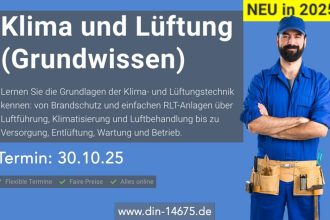 Lernen Sie die Grundlagen der Klima- und Lüftungstechnik kennen: von Brandschutz und einfachen RLT-Anlagen über Luftführung, Klimatisierung und Luftbehandlung bis zu Versorgung, Entlüftung, Wartung und Betrieb. Mangelndes Wissen in der Klima- und Lüftungstechnik kann zu eingeschränkter Luftqualität, erhöhtem Energieverbrauch und fehlendem Verständnis für die Luftführung im Raum führen. Diese Schulung vermittelt die zentralen Grundlagen von […]