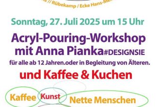 Kunst, Kaffee und nette Menschen – all das erwartet die Besucher*innen am Sonntag, den 27. Juli 2025 um 15 Uhr im Teegarten Hainholz (Rübekamp / Ecke Hans-Meinecke-Weg). Unter dem Motto „Kaffee & Kunst im Teegarten“ lädt der Verein MSV e.V. herzlich zu einem inspirierenden Nachmittag ein. Im Mittelpunkt steht ein Acryl-Pouring-Workshop mit der Künstlerin Anna […]