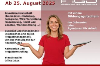 Die Immobilienbranche verändert sich rasant – gestiegene Anforderungen, neue Technologien und eine zunehmende Digitalisierung prägen die Arbeit von Projektverantwortlichen, Assistenzkräften und Fachpersonal. Mit der Weiterbildung im Bereich Immobilienwirtschaft und Business-Management der FiGD Akademie bereiten Sie sich optimal auf moderne Berufsfelder vor. Die Maßnahme ist AZAV-zertifiziert und zu 100 % über den Bildungsgutschein förderfähig – mehr Informationen […]