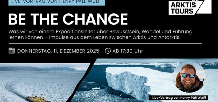 Arktis Tours LIVE Explorer Talk: „BE THE CHANGE“Was wir von einem Expeditionsleiter über Bewusstsein, Wandel und Führung lernen können –Impulse aus dem Leben zwischen Arktis & Antarktis. LIVE Vortrag mit Henry Páll Wulff, Polar-Experte & TEDx Speaker. Henry Páll Wulff ist Expeditionsleiter und Polar-Experte mit langjähriger Erfahrung in der Arktis und Antarktis. Als Operations Manager des Unternehmens […]