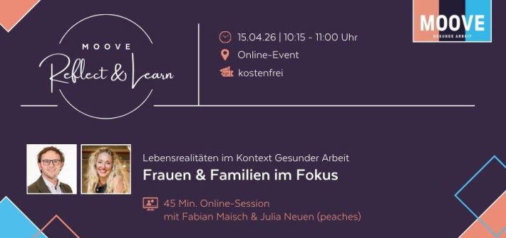 MOOVE Reflect & Learn: Lebensrealitäten im Kontext Gesunder Arbeit – Frauen & Familien im Fokus (Webinar | Online)