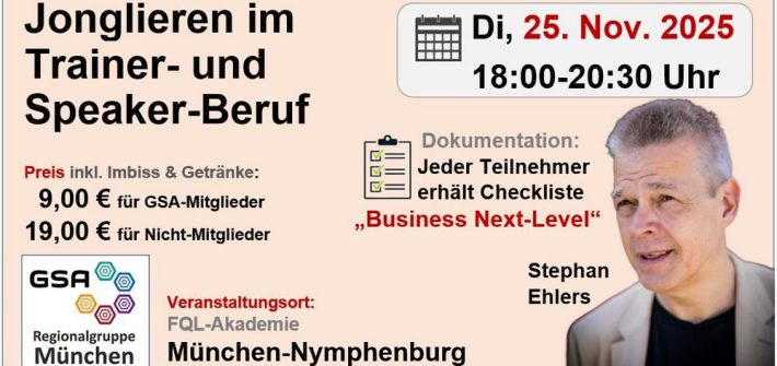 Tipps & Tricks aus 30 Jahren Erfahrung als Trainer, Redner, Autor und Jongleur: Insights zu ANGEBOTE & AUFTRITT ANFRAGEN & AUFTRÄGE IT & WEBTOOLS VERTRIEB & MARKETING In diesem 90-minütigen Impuls-Workshop erleben die Teilnehmer nicht nur die Grundlagen der 3-Ball-Jonglage, sondern erhalten einen selten offenen, unterhaltsamen und praxisnahen Einblick in die fast 30-jährige Karriere von Stephan Ehlers – […]