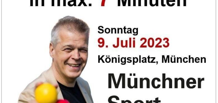 Am 9. Juli 2023 findet nach 3 Jahren Pause wieder das Sportfestival München auf dem Königsplatz in München statt. Der Eintritt ist frei! 7 Jahre nach dem letzten Weltrekordversuch kehren Stephan Ehlers und sein Jongliertrainer-Team zurück zum Königsplatz und wollen wieder einen Weltrekord im Jonglieren-Lernen aufstellen. 2016 haben 119 Münchner gleichzeitig das Jonglieren mit 3 Bällen in nur 10 Minuten gelernt (siehe […]